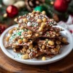 This Crockpot Christmas Crack is an easy and delicious holiday treat combining peanuts and layers of various chocolate chips melted together in a slow cooker. Perfect for adding to a cookie plate or sharing at parties, its creamy texture and festive sprinkles make it a standout sweet snack for the season.